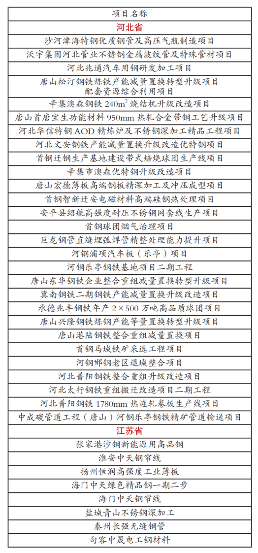 克日,,,,,,,,河北、江苏、山东、山西等多个钢铁生产大省陆续宣布2024年省级重点工程项目名单,,,,,,,,其中多项*钢铁工程项目位列名单中,,,,,,,,本报将钢铁相关项目名单整理如下: