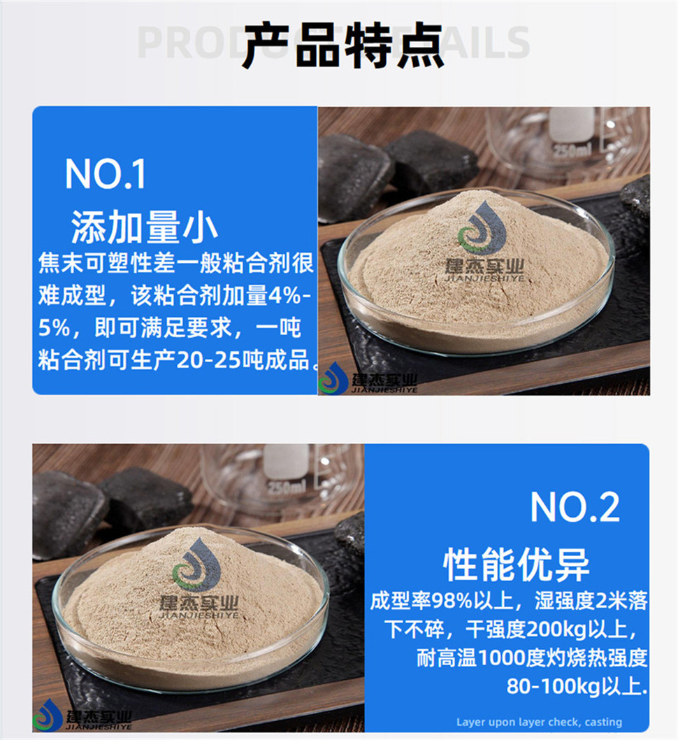 产品先容:焦炭在生产破碎的历程中会爆发大宗的粉末(焦粉),,,,,,,,把焦粉冷压成型取代焦炭块使用不但在一定水平上降低了钢铁生产本钱,,,,,,,,还能有用的*焦炭块供应主要的问题。。。。。。。我公司经重复实践研制出的焦粉冷压成型粘合剂,,,,,,,,具有较强的粘结性、活性和吸附性,,,,,,,,又有一定的抗高温性能……
